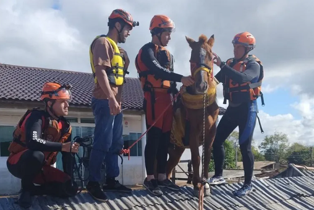 Nesta quinta-feira (9), uma operação de resgate mobilizou equipes dos Bombeiros de São Paulo para salvar o cavalo Caramelo, que passou quatro dias ilhado no telhado de uma casa em Canoas, no Rio Grande do Sul. O animal foi resgatado com sucesso na manhã do mesmo dia com o auxílio de dois barcos do Corpo de Bombeiros paulista.