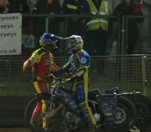 Uma disputa entre os pilotos Josh Pickering (Sheffield) e Kyle Howarth (Leicester), durante a nona bateria da Premiership KO Cup, resultou em uma altercação...
