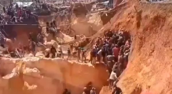 Funcionários de diversas entidades governamentais da Venezuela realizam trabalhos de salvamento na mina “Bulla Loca”, no estado Bolívar (ao sul, na fronteira com o...