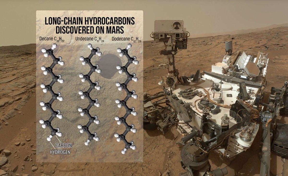 Não apenas uma, mas três moléculas orgânicas de cadeia longa foram identificadas. Esses fragmentos químicos, na Terra, costumam estar associados à vida. Os compostos encontrados – decano, undecano e dodecano – combinam átomos de carbono e hidrogênio em sequências lineares de dez, onze e doze unidades, respectivamente.
