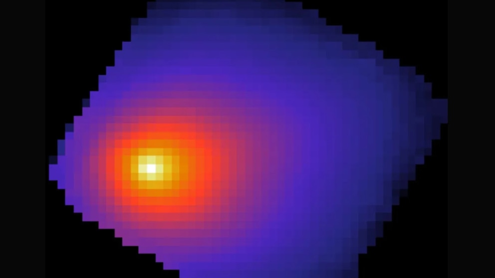 O cometa exibe uma cor mais azulada que o Sol, um fenômeno que intriga os cientistas devido à sua temperatura anômala. (James Webb/NASA)