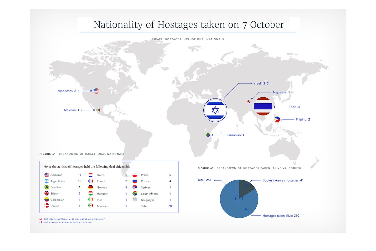 O relatório estabelece que essa ofensiva representa o maior assassinato em massa de judeus desde o Holocausto, sendo classificada como o terceiro atentado terrorista mais mortal em termos absolutos no mundo e o mais letal per capita, já que um em cada 10.000 cidadãos israelenses foi morto naquele dia.