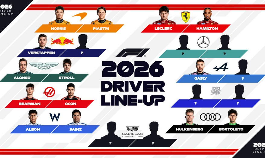 Fórmula 1 Divulga Mapa de Pilotos para 2026: Vagas em Aberto e Nomes Confirmados