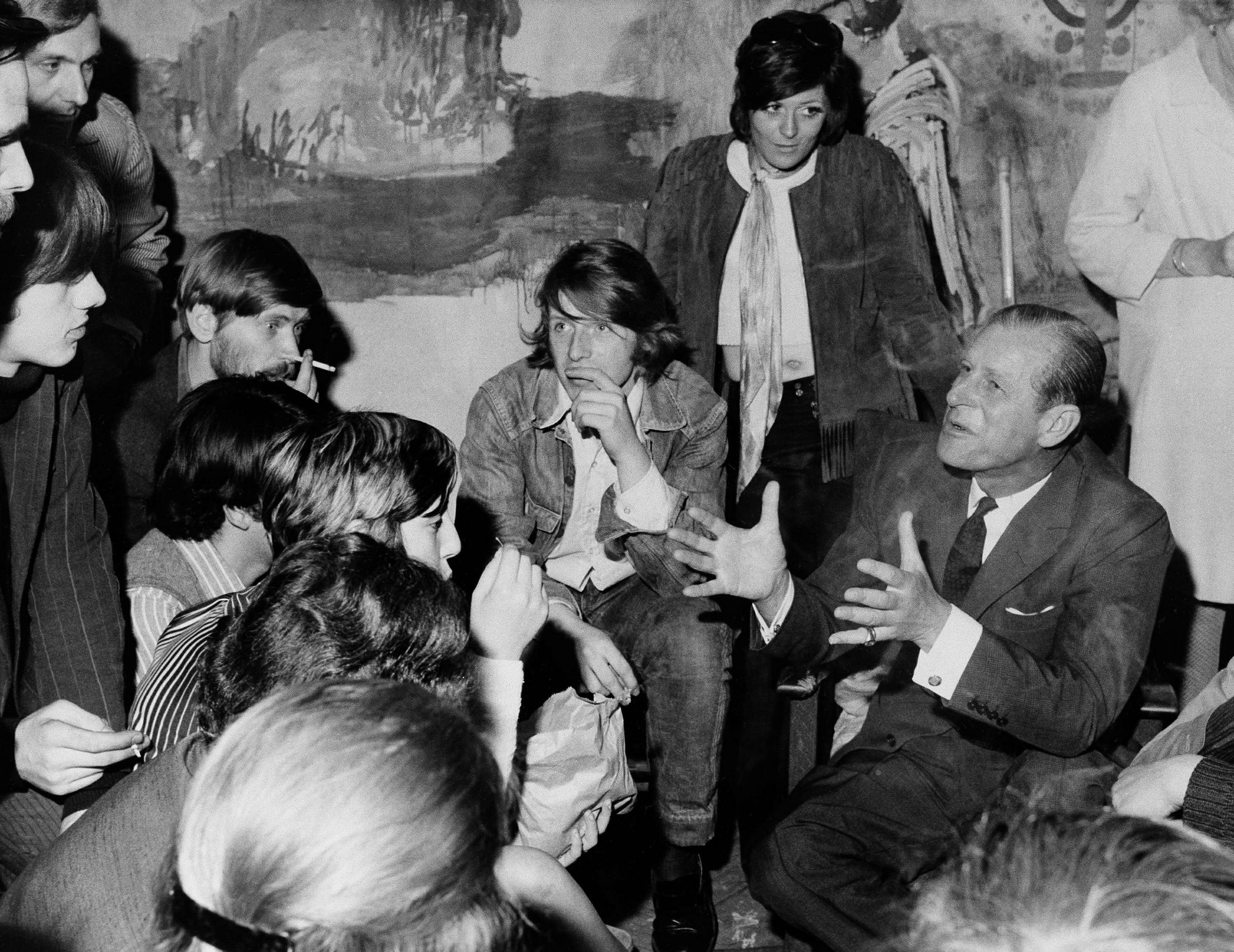 O príncipe Philip da Grã-Bretanha se juntou à sessão de terapia em grupo de um paciente no National Addiction and Research Institute em Londres em 8 de julho de 1969. (AP Photo)