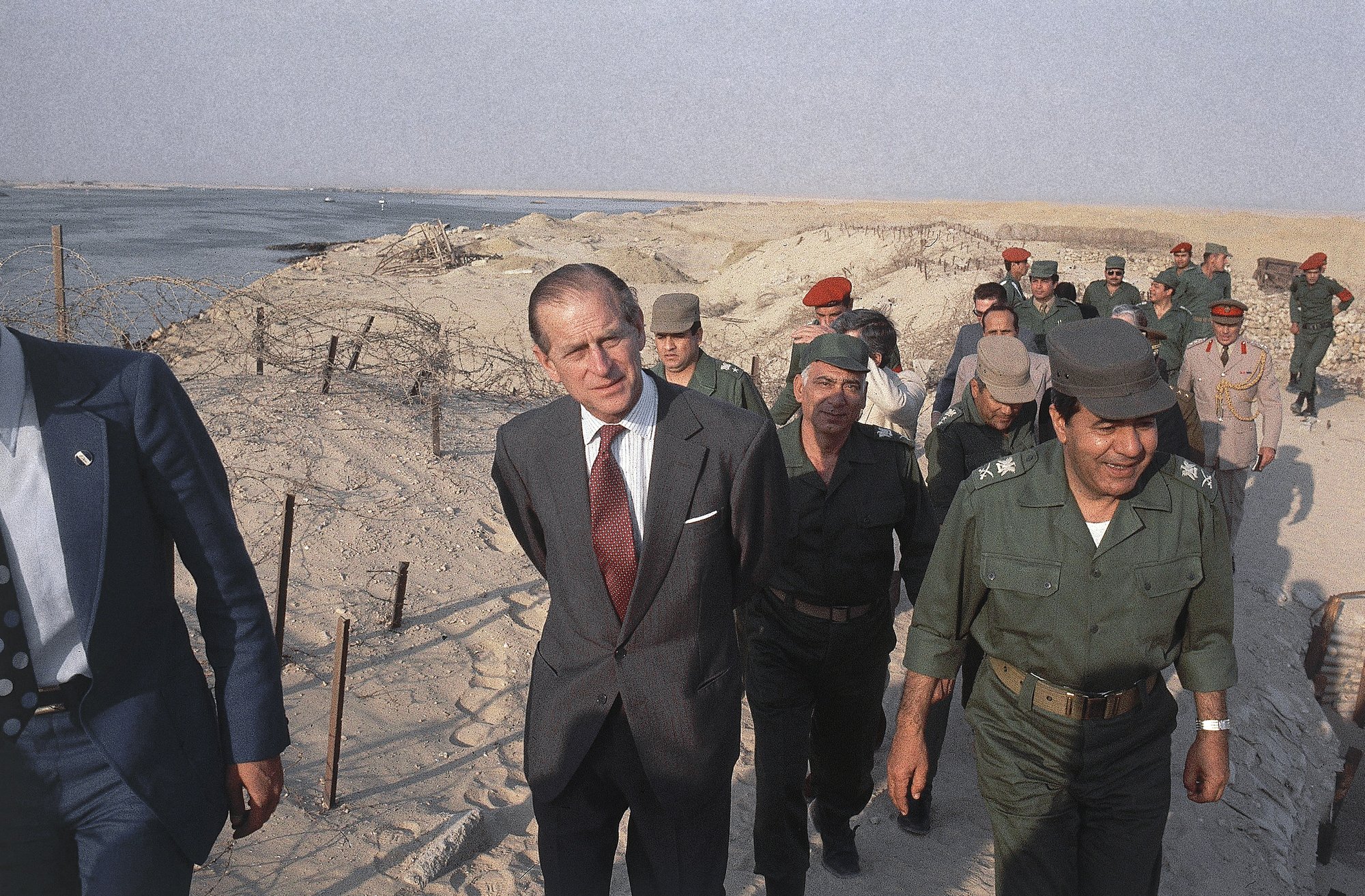 O príncipe Philip da Grã-Bretanha visita os restos da linha Bar-Lev no Egito em 1981. (AP Photo / Bill Foley)