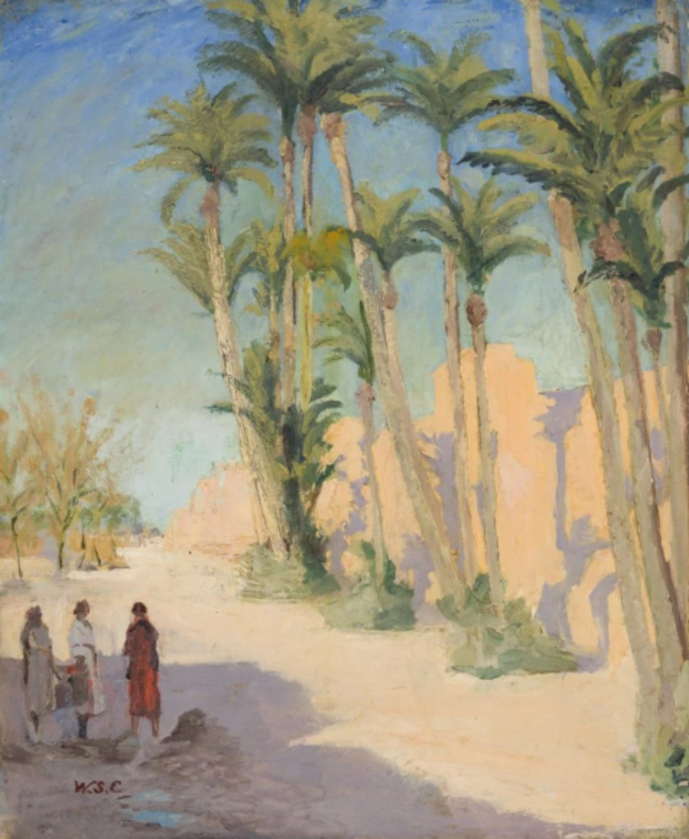Churchill começou a se dedicar à pintura após ser marginalizado politicamente e não obter cargo no governo de Stanley Baldwin. Em 1935, viajou ao Marrocos, descrevendo Marrakech como “O Paris do Saara”. A obra Marrakech (1935) evidencia seu fascínio pelo jogo de luz e sombra da cidade. Churchill retornaria em 1943, junto de Franklin Roosevelt, após a Conferência de Casablanca, ocasião em que presenteou o presidente americano com uma pintura da mesquita principal, enquadrada pelas montanhas nevadas do Atlas. Em 1956, sua esposa Clementine doou a pintura à Hudson’s Bay Company.