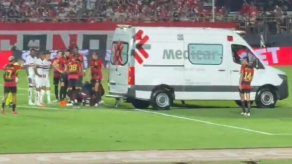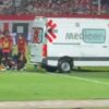 O lateral-esquerdo Patryck Lanza, do São Paulo, foi retirado de ambulância do Allianz Parque durante o segundo tempo do clássico contra o Palmeiras, após...