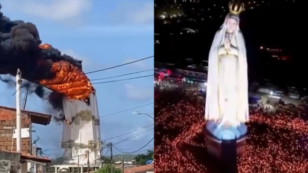 Um incêndio de grandes proporções destruiu, nesta terça-feira (24), a estátua de Nossa Senhora de Fátima que estava em construção no bairro Pajuçara, na...