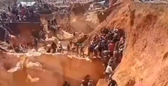 Dezenas de pessoas trabalhavam na mina a céu aberto quando, de repente, um deslizamento de terra caiu sobre vários dos mineiros, enquanto outros escaparam aterrorizados.